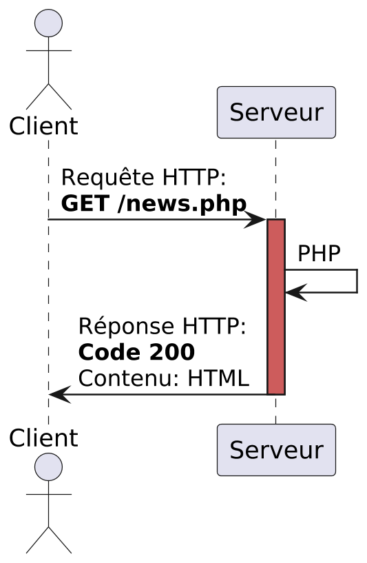 Reprenons l’architecture client serveur pour une page statique (HTML) :
