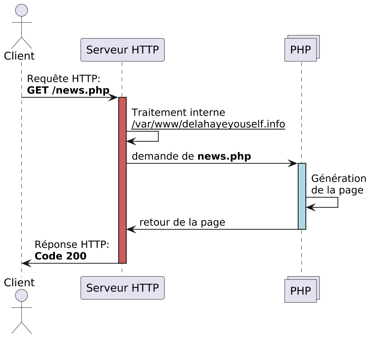 On va donc demander à PHP de générer du HTML. On peut aussi utiliser PHP pour générer autre chose : du CSS, du JSON, … !